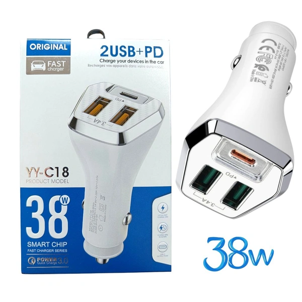 C18 Car Adapter 2usb+Pd 38w