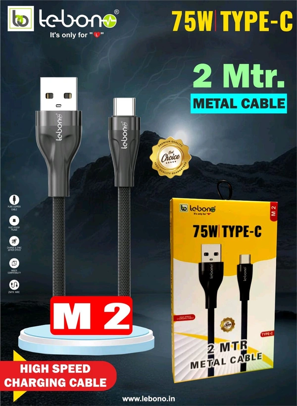 Lebon M2 75w Type C Cable (6month Warranty) 2mtr Metal Cable