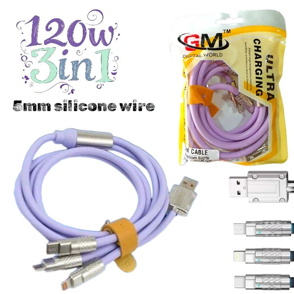 Silicone 5mm Wire 120w 3in1 Cable (Lite Purple)