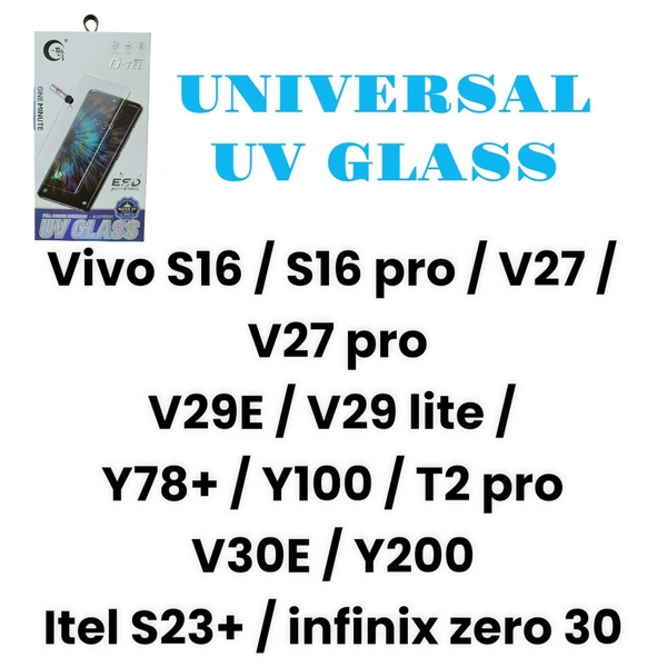 Vivo S16 / S16 pro / V27 / V27 pro/V29E / V29 lite / Y78+ / Y100 / T2 pro /V30E / Y200/Itel S23+ / infinix zero 30 Universal Uv Glass